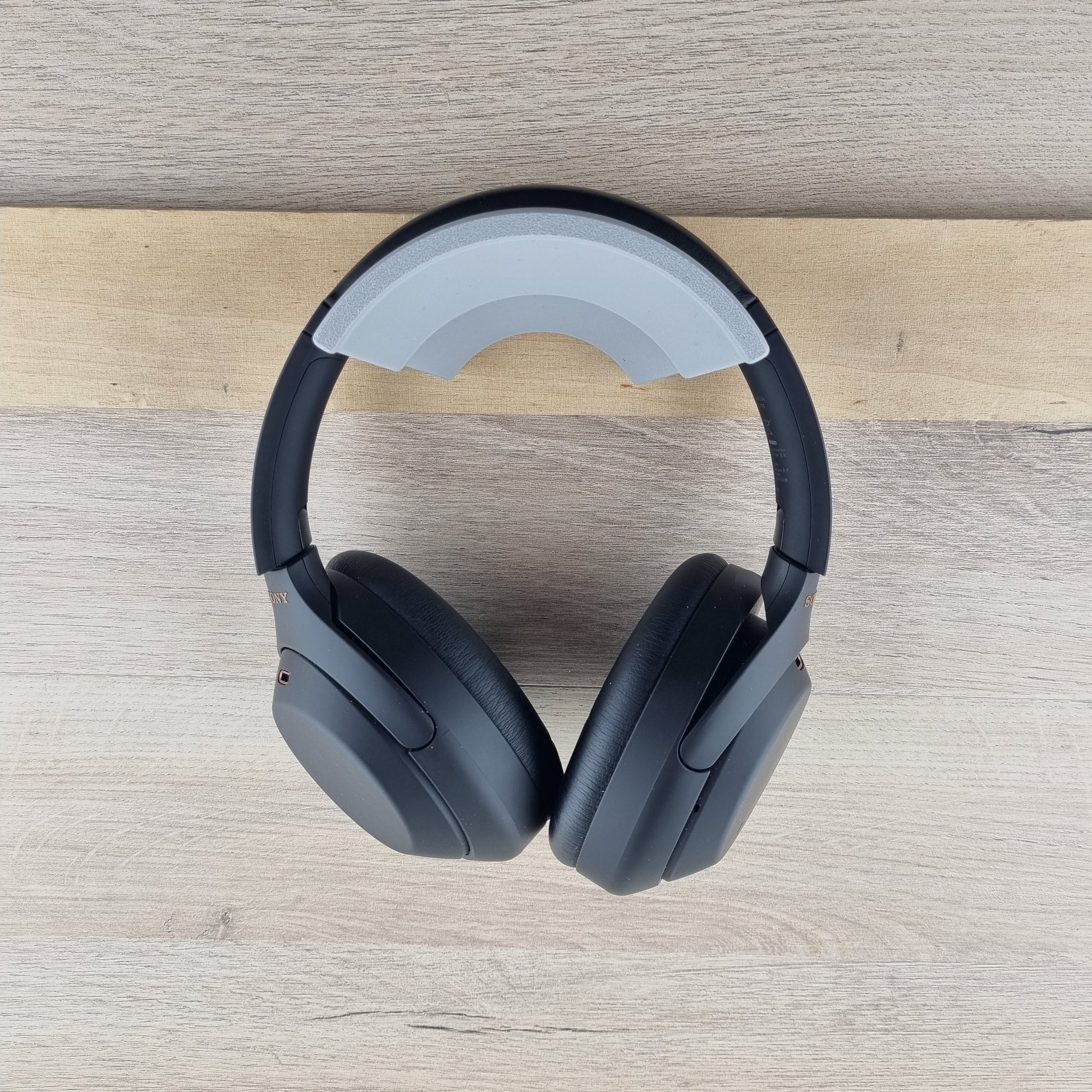 Low profile, compact, minimalist headphone / headset hanger for mounting on walls or other furniture.